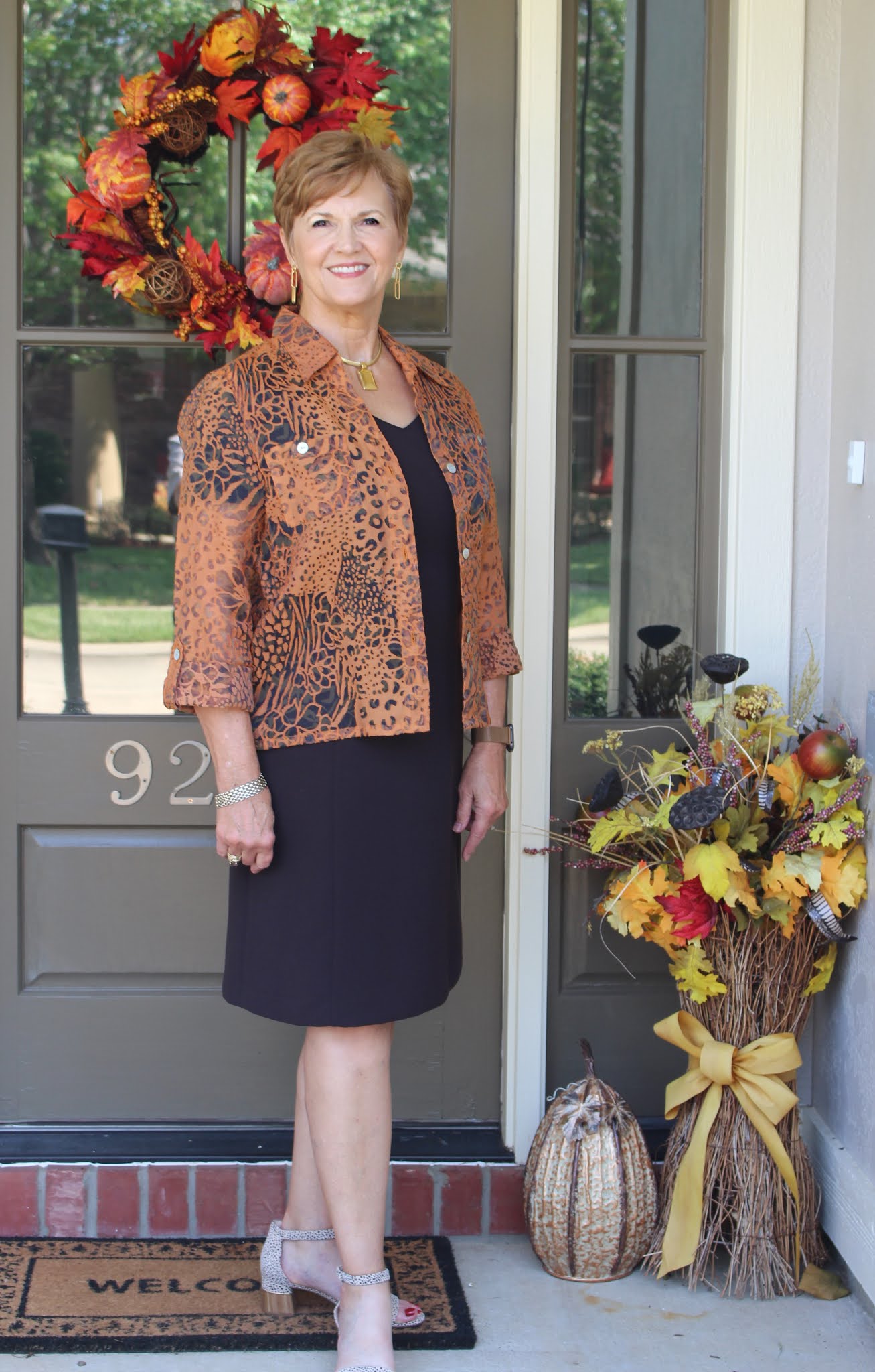 As for me, I chose a bold gold necklace between the red and my yellow-toned skin, completing my own version of the look.