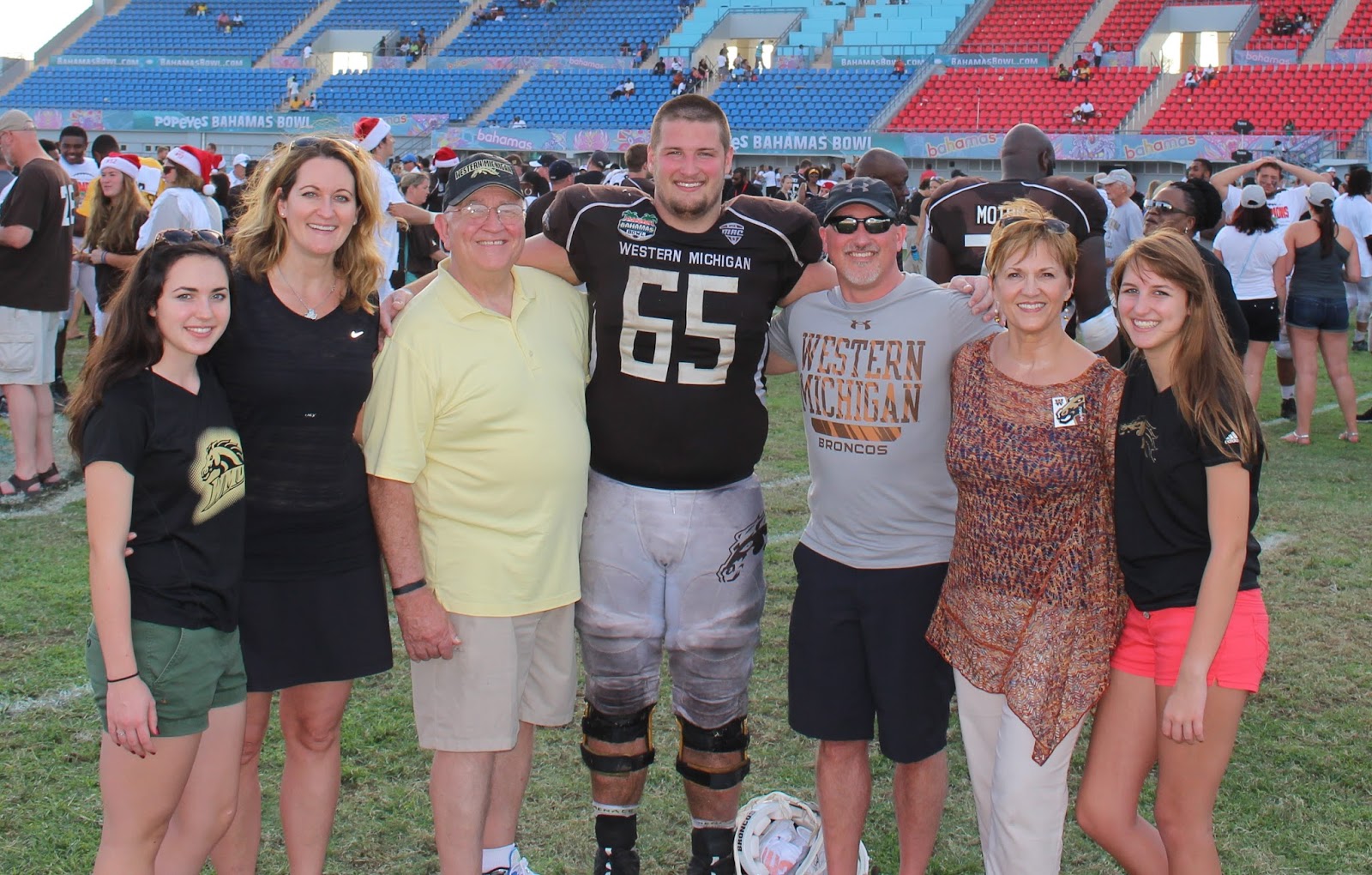 It was a wonderful time with family in this beautiful place. I will show more pictures in another post, but this is our bunch after the game with our Big Boy left guard, #65 who played a great game.
